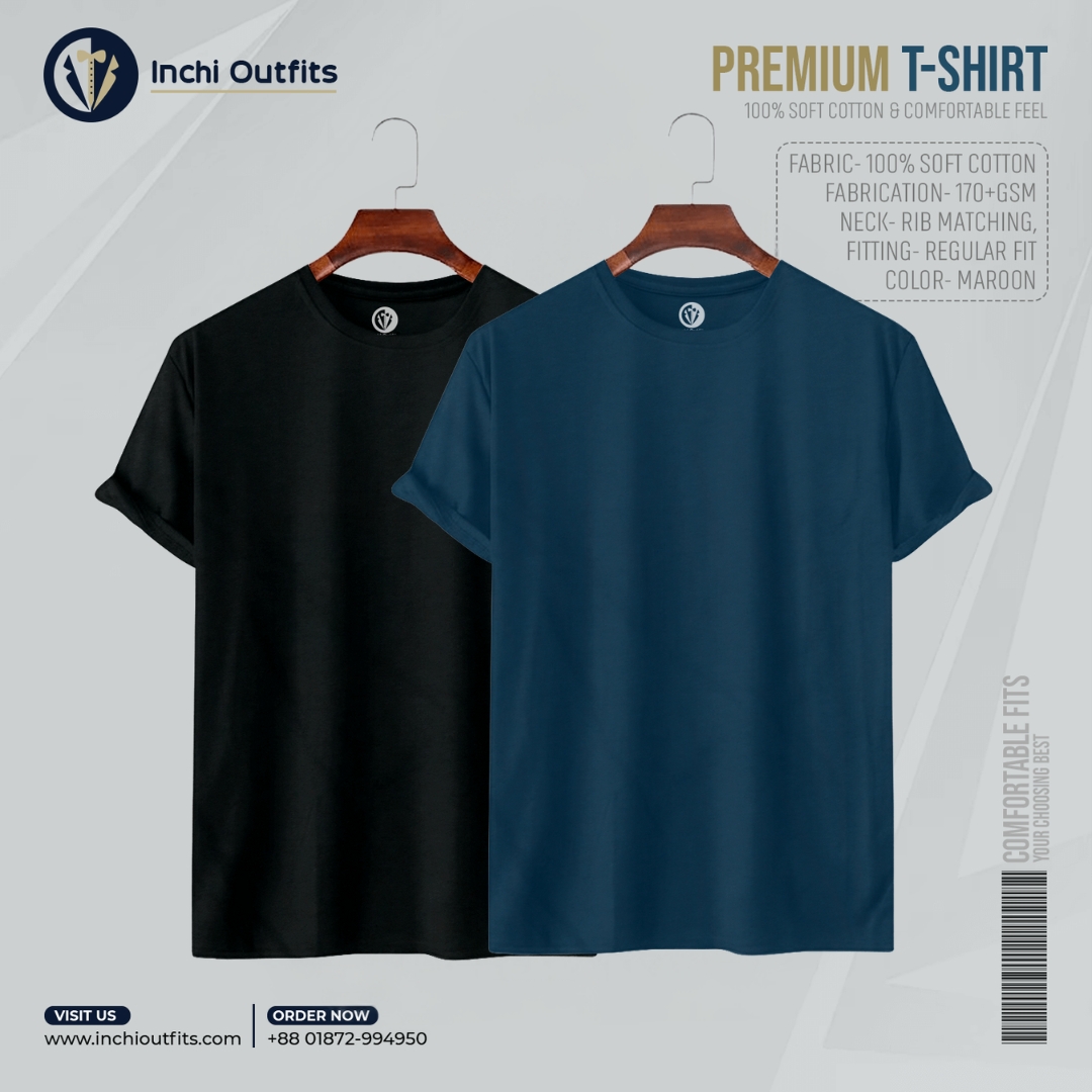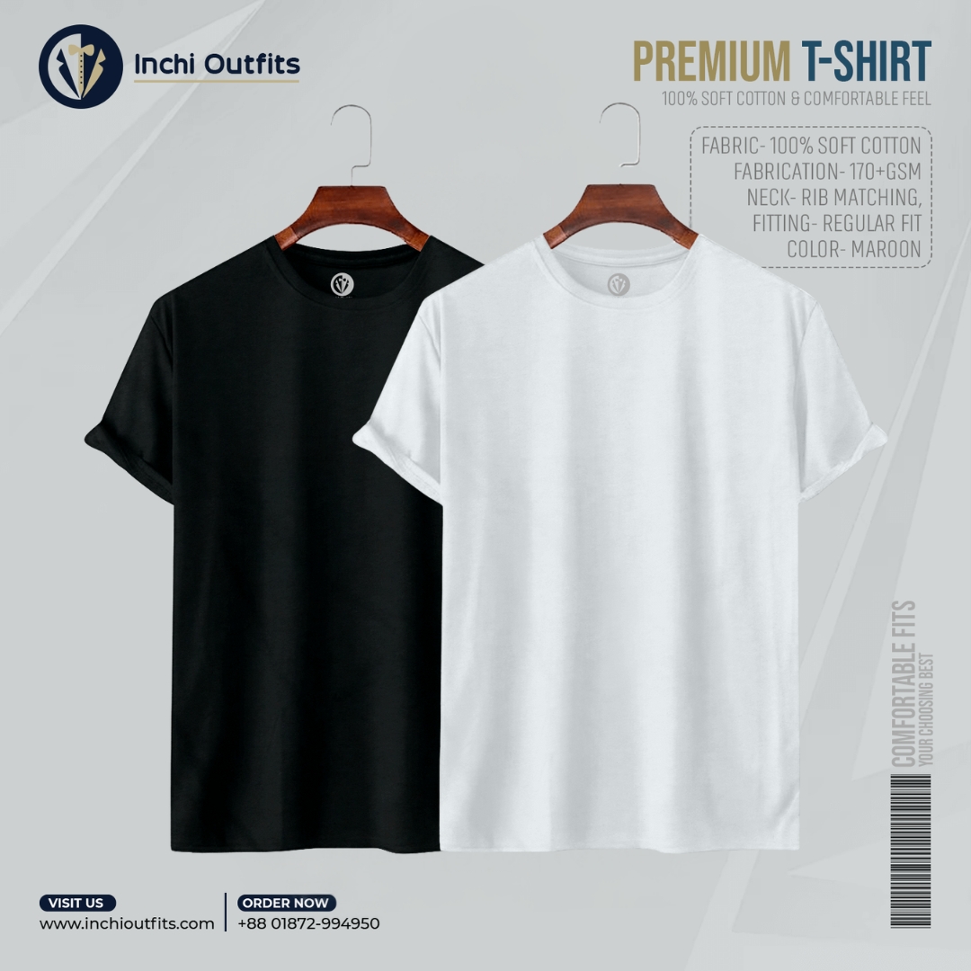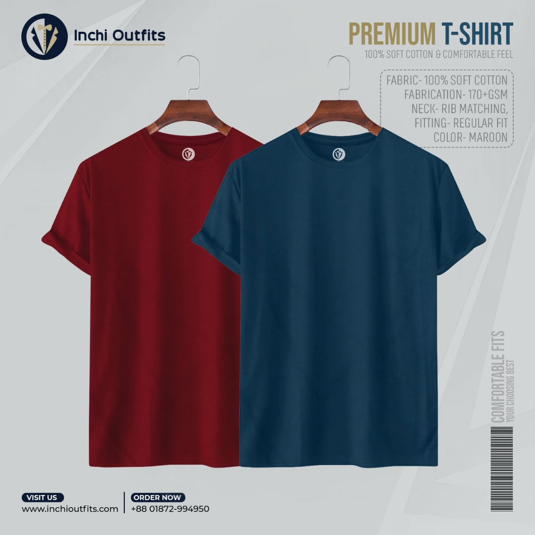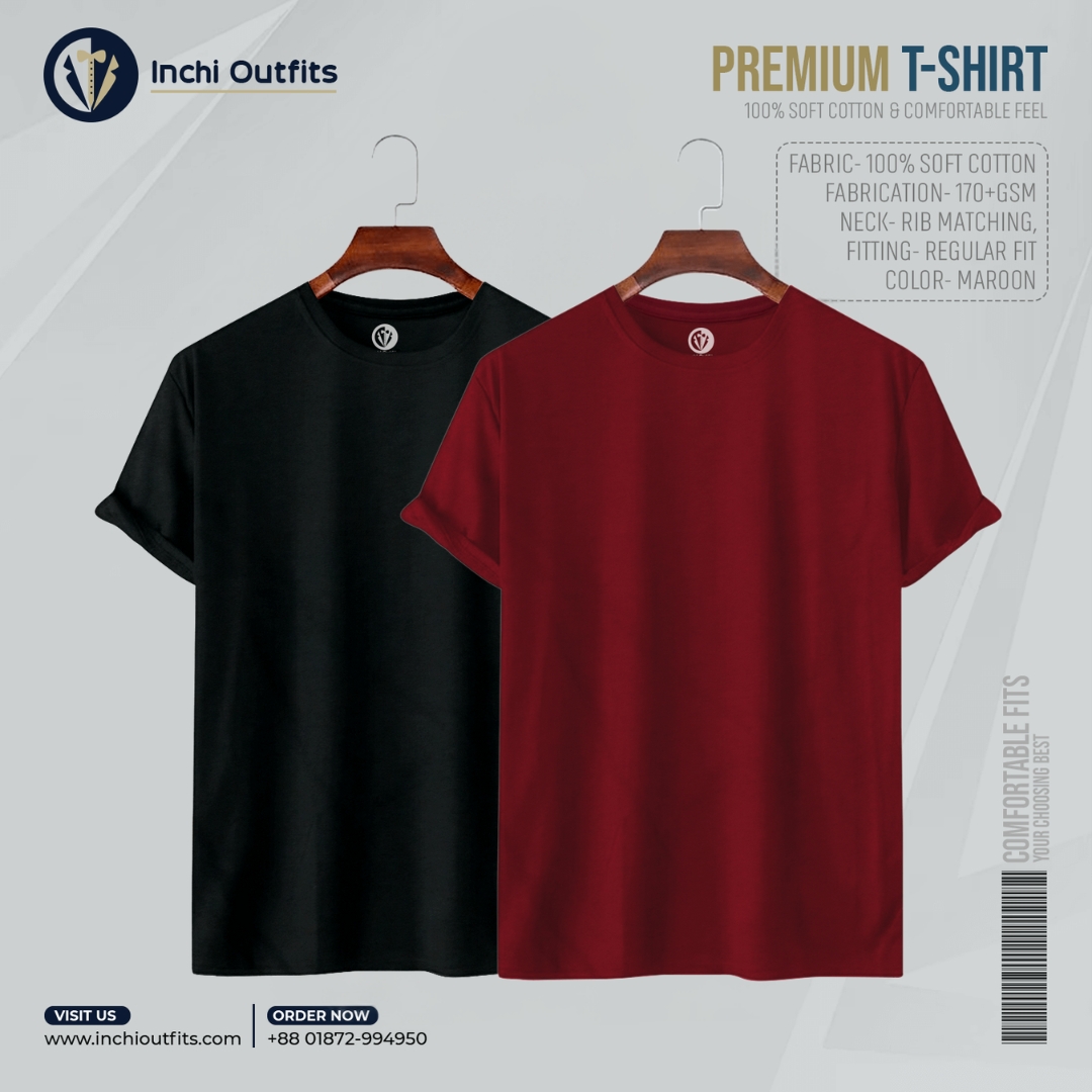 2 pcs Premium T-shirt (Maroon, White)